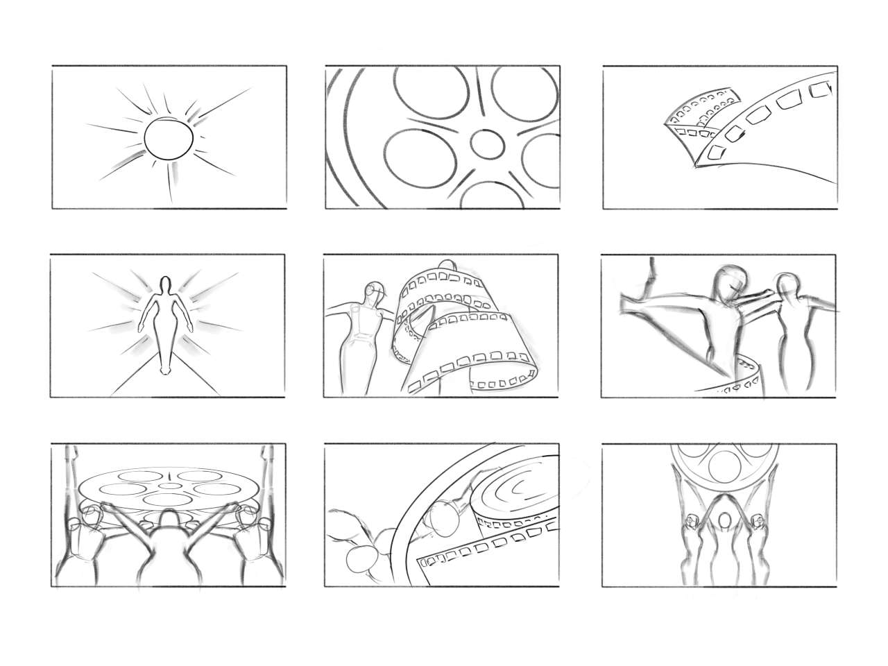 The storyboard I created in Adobe Fresco. It's a great tool to sketch out ideas and even storyboards, to then eventually send over to Photoshop with one click. I'm not the best storyboard artist, but it was important in this case to have consistent storytelling through the animation and keep the overall concept together.